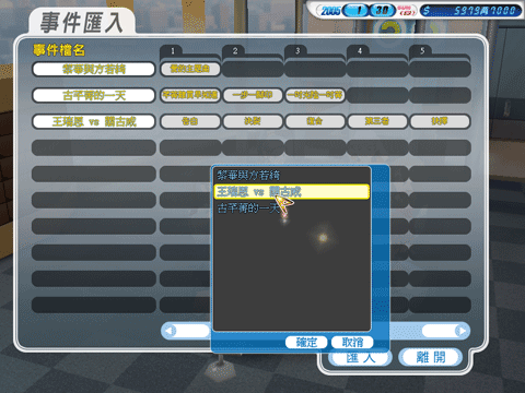 遊戲中事件可隨時匯入、刪除、重置,以方便玩家隨時增減劇情 |